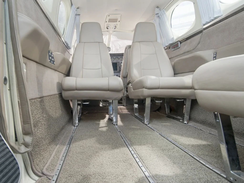 Deep clean and refresh of cabin seats, surfaces, and carpets using aviation-approved products.